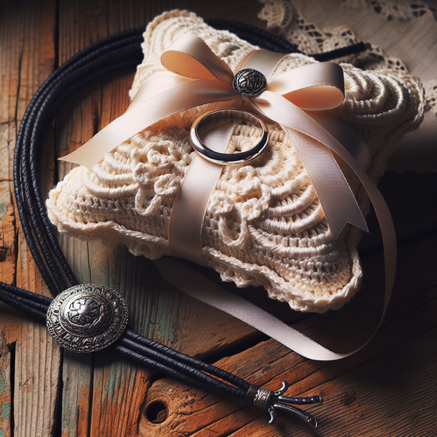 The night before our wedding, we sat at the kitchen table, surrounded by fabric scraps and leather cords. My husband was busy shaping his bolo slide from an old silver coin he’d found at a flea market—a nod to his grandfather’s love of collecting. I finished tying satin ribbon around the center of my crochet pillow, making sure the loops would hold our rings securely.