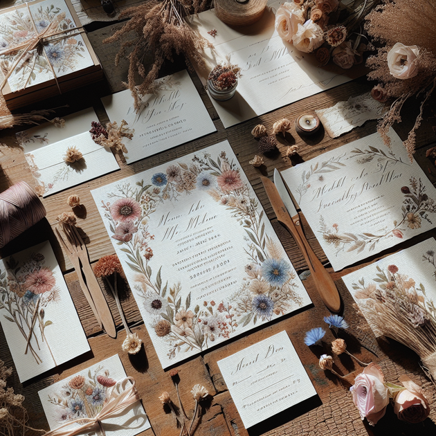 - RSVP Card Details: If using dried flowers on RSVP cards, leave enough room or create a placeholder so nothing overlaps key info.